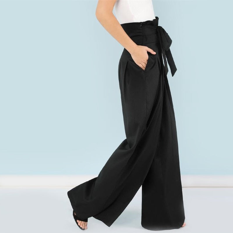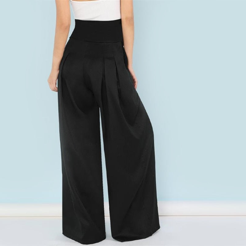 Pantalon large taille haute Ceinture Plissée noir